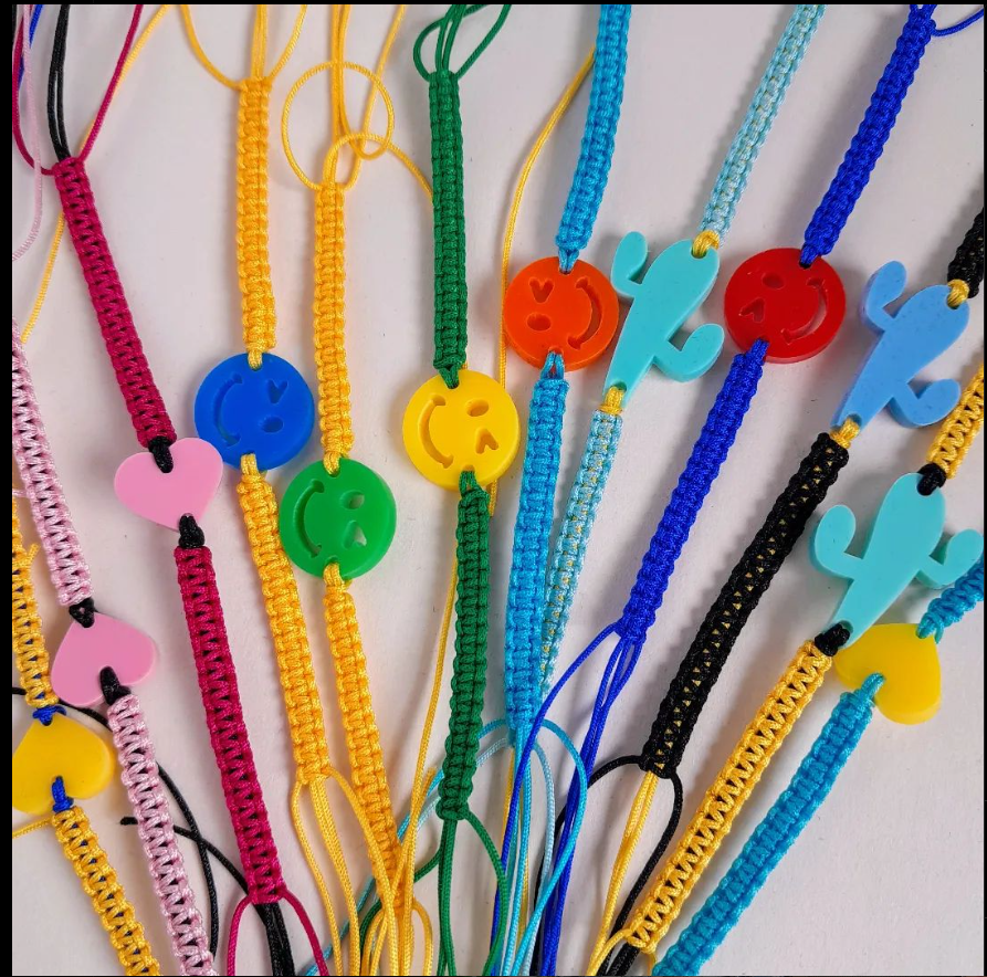 Pulseras de verano echas a base de macramé y con figura de plexy. Perfecta para todos los públicos, compatible con el agua.